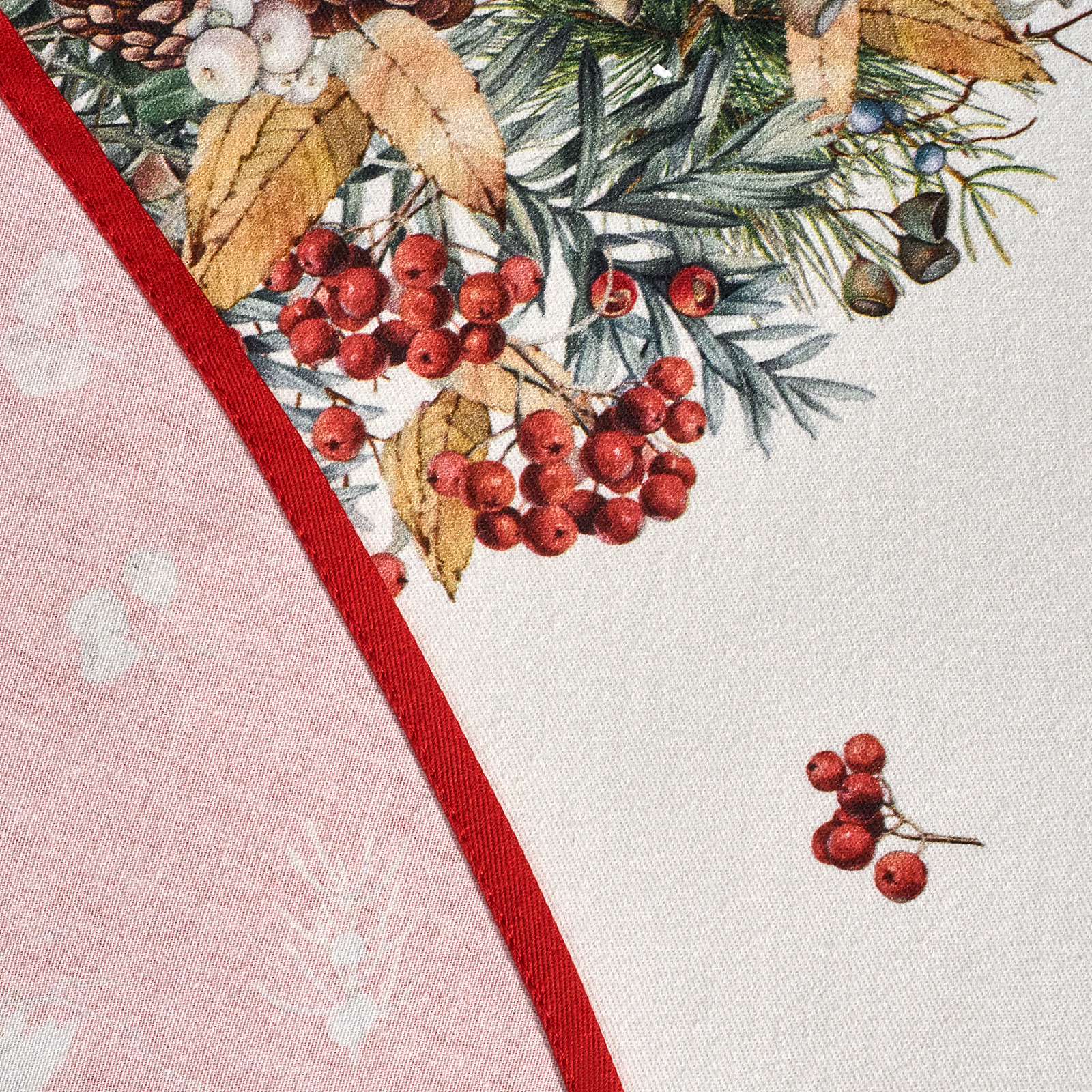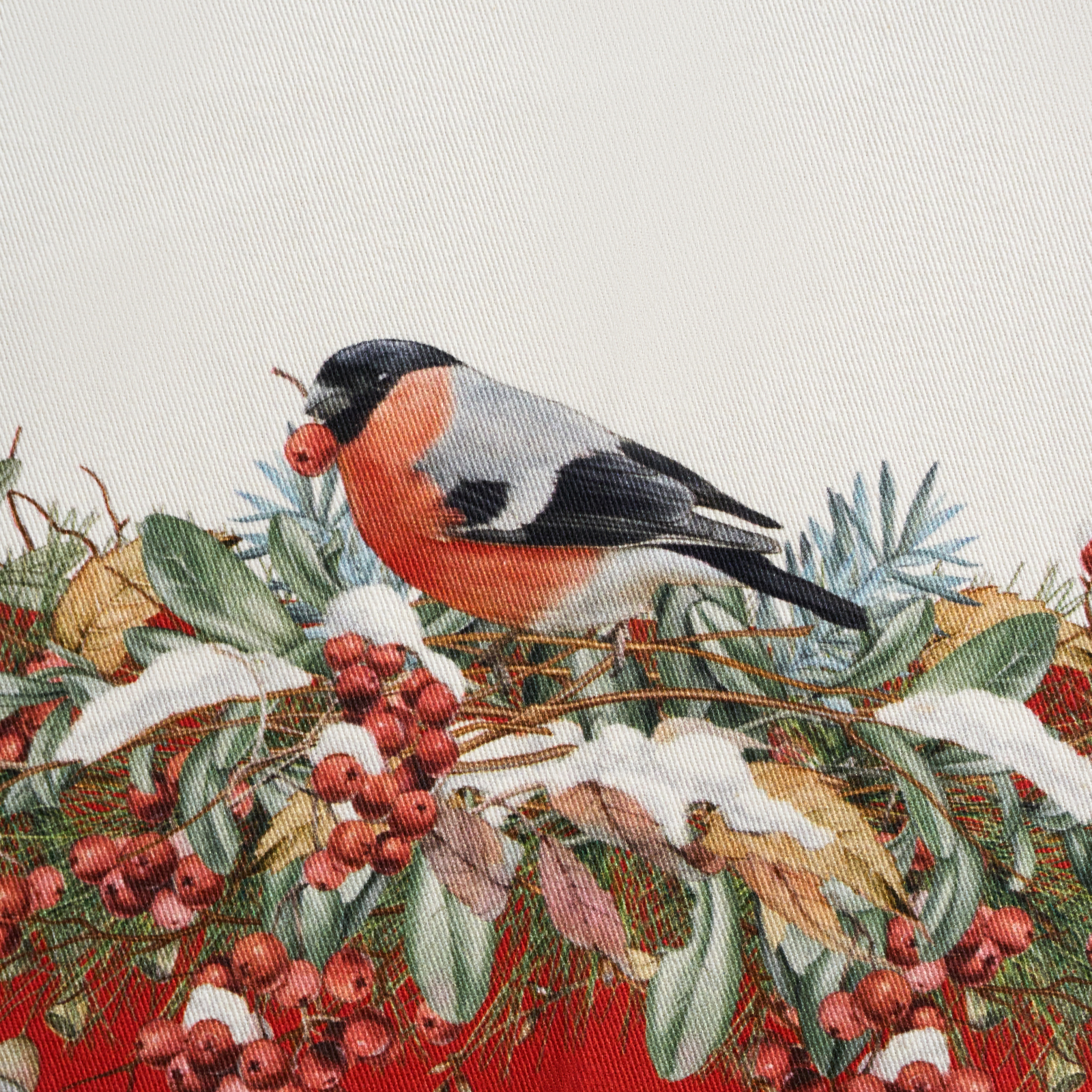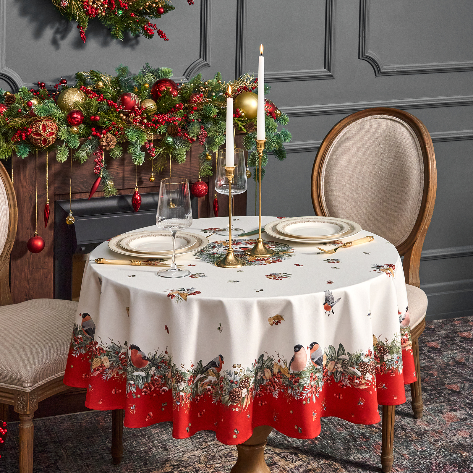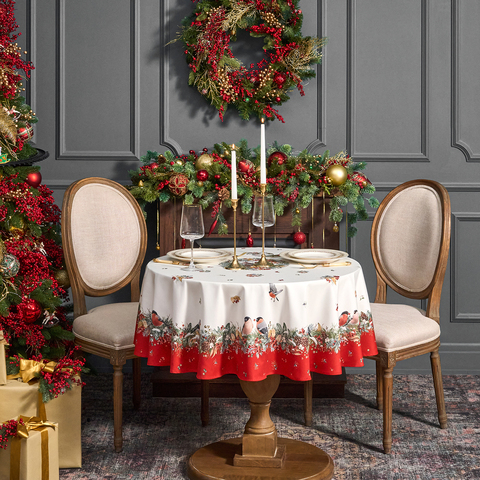 СКАТЕРТЬ "МОРОЗКО.СНЕГИРИ" круглая ,КРАСНЫЙ, 100% ХЛОПОК,ТВИЛ, ПРОПИТКА