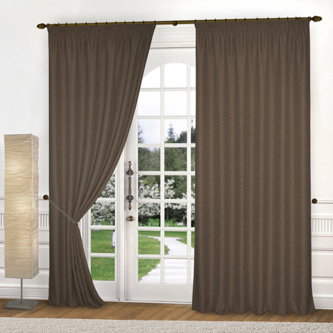 Шторы в гостиную "Лён-рогожка" К334-1 шоколад 250*240