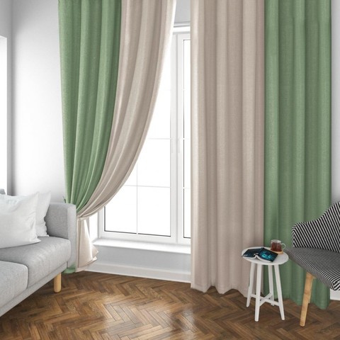 Лицевая сторона мягкий плюш, изнаночная гладкая, с легкой рябью. Крепление на шторной ленте.