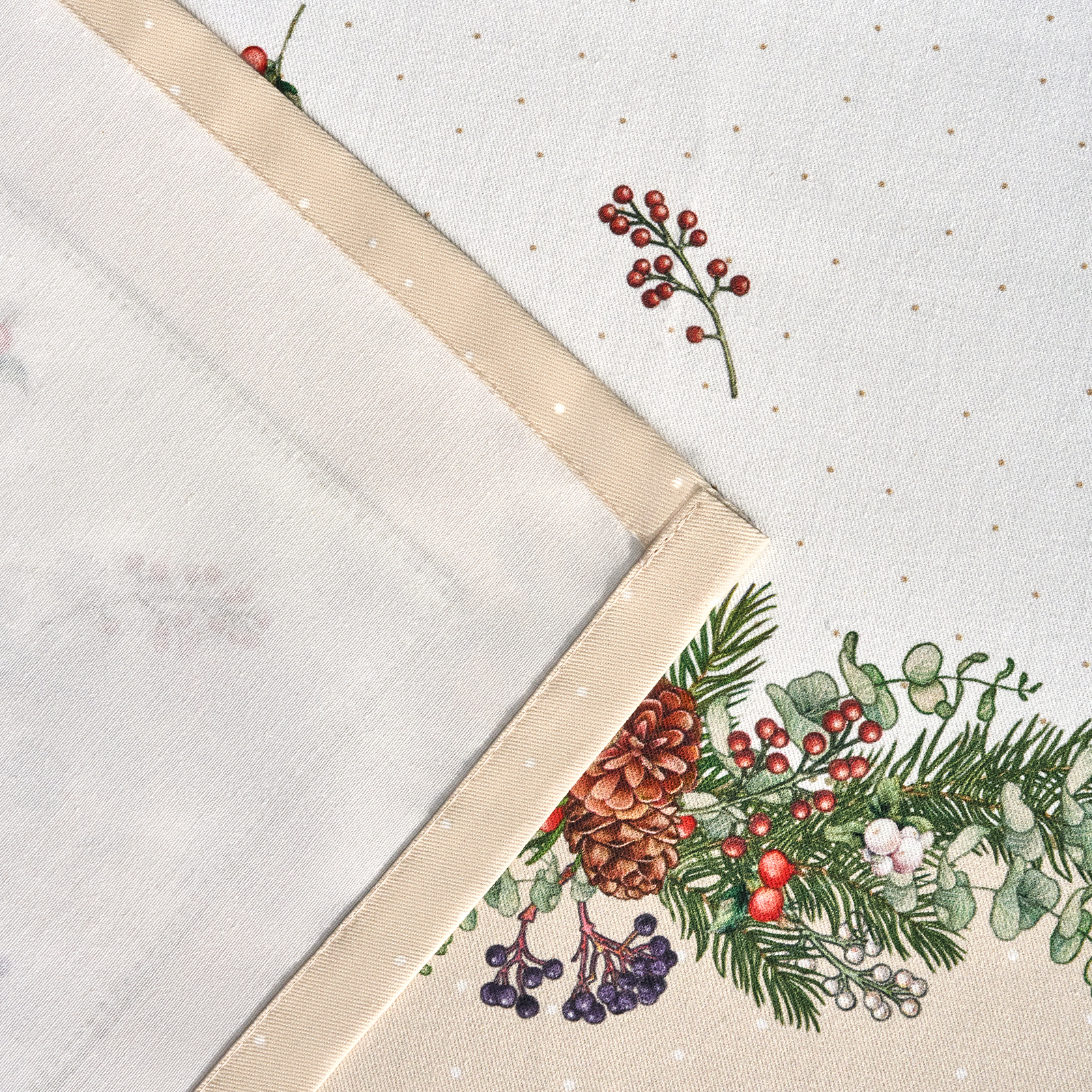 Новогодняя скатерть Lefard из коллекции "Celebration" — идеальный акцент для сервировки большого праздничного стола. Узор с рождественским венком, еловыми ветками, ягодами и шишками наполняет интерьер теплом и праздничным настроением. Такой венок издавна считался оберегом дома и символом гостеприимства. Мы делимся с вами этой энергией — чтобы в доме царили уют, свет и радость.