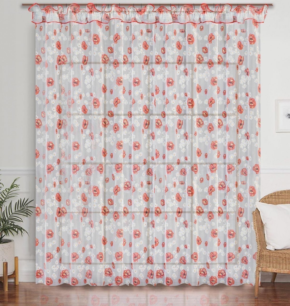 Классический тюль из мягкой вуали с печатным цветочным рисунком. Украшен рюшей в верхней части. Крепление на шторной ленте.