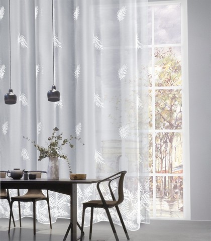 Белоснежный жаккардовый тюль в современном стиле с рисунком на природные мотивы. Сетчатая основа полотна с вытканным на ней сложным рисунком. Крепление на шторной ленте. Практичен и удобен в уходе. Польская фабрика - национальный лидер сегмента гардин и декоративных тканей. Изделия фабрики уже более 140 лет славятся во многих странах Европы и мира своими высокими потребительскими качествами. Даже по истечении многих лет использования, они не теряют формы и цвета.