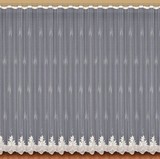 Классический кремовый жаккардовый тюль со сложным вытканным рисунком на сетчатой основе полотна. Крепление на шторной ленте.