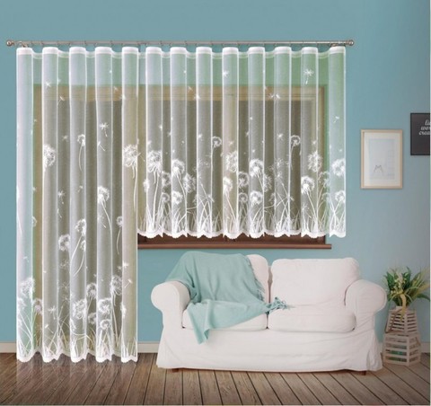 Кремовый жаккардовый тюль с современным стильным дизайном. Сетчатая основа полотна с вытканным на ней сложным рисунком крупных одуванчиков. Крепление на шторной ленте. Изделия польской фабрики славятся своими высокими потребительскими качествами. Даже по истечении многих лет использования, они не теряют формы и цвета.