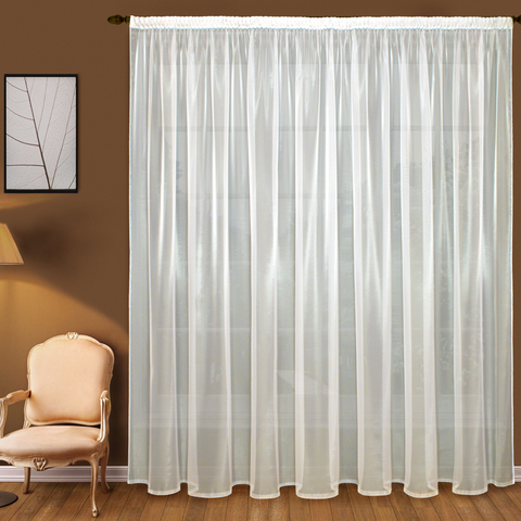 Вуаль – тонкая, мягкая, полупрозрачная ткань с матовой поверхностью, хорошо драпируется. Великолепное дополнение к портьерам. Занавеска изготовлена из вуали высокого качества. Крепление: шторная лента 6 см, 4 нити сборки, 2 ряда карманов для крючков. Возможно продеть карнизную штангу. Затемнение 20%. Состав ткани 100% полиэстер. Уход за изделием: машинная стирка при температуре не более 40°С, не отбеливать, не сушить в сушильной машине, гладить при температуре не более 150°С.