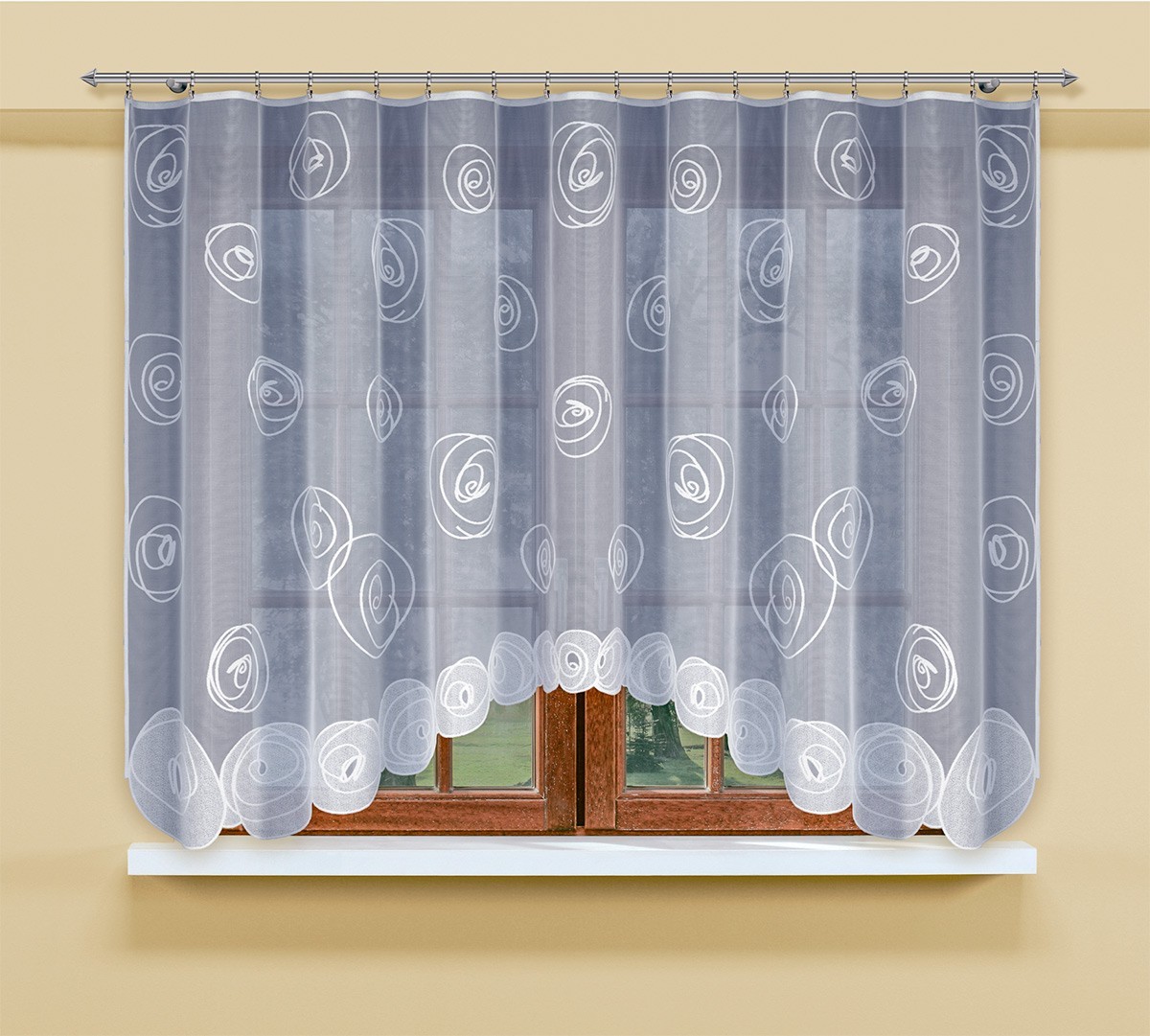 Белоснежный жаккардовый тюль в современном стиле. Крепление на шторной ленте. Это единственный в Польше промышленный производитель вышитых изделий, а также национальный лидер сегмента гардин и декоративных тканей. Изделия фабрики уже более 140 лет славятся во многих странах Европы и мира своими высокими потребительскими качествами. Даже по истечении многих лет использования, они не теряют формы и цвета.
